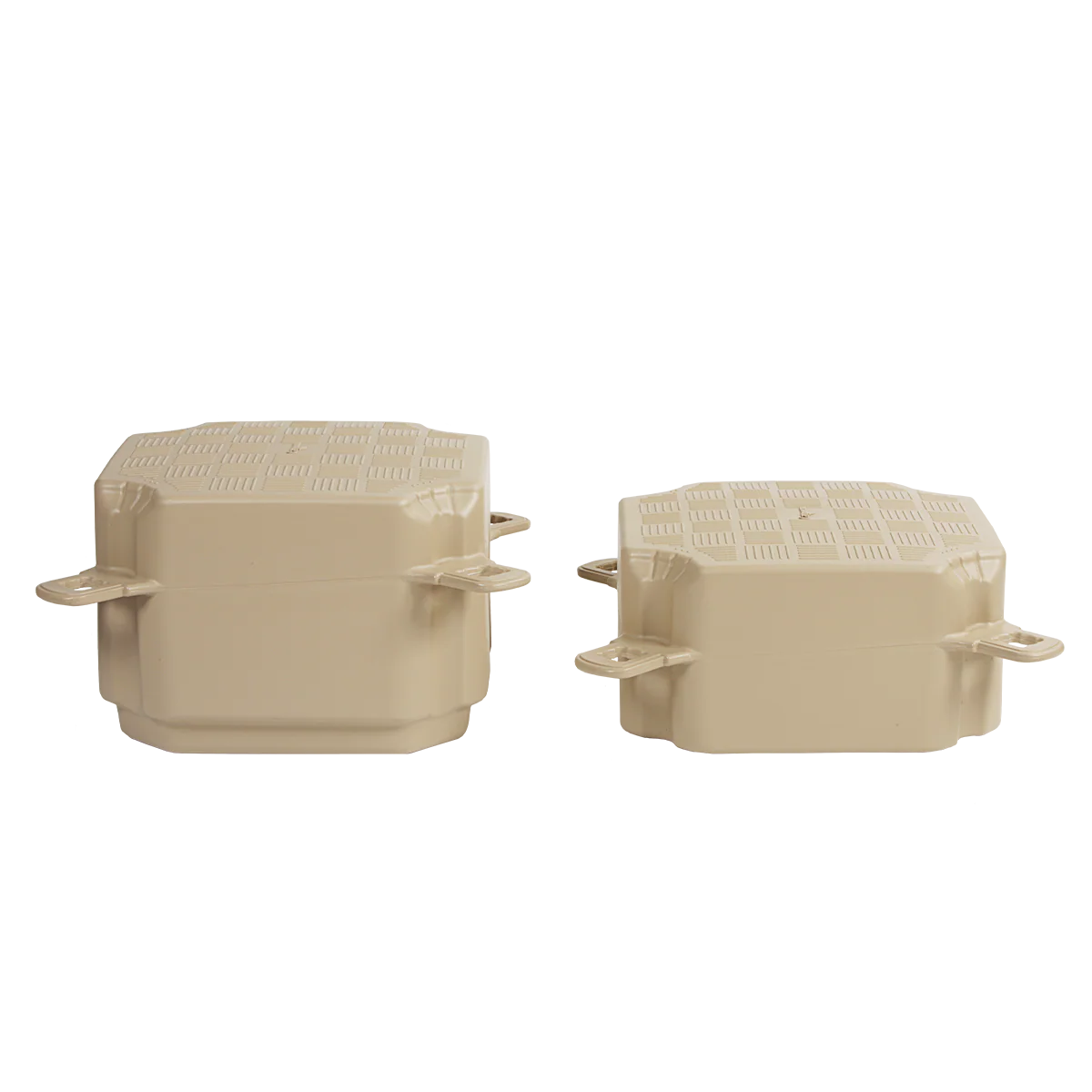 The low profile cube is a basic unit that can be used to construct an installation. It is mainly used to accommodate rowboats such as canoes and kayaks. Its edge being closer to the waterline greatly facilitates boarding. Low-profile cubes make excellent rowing floating docks.